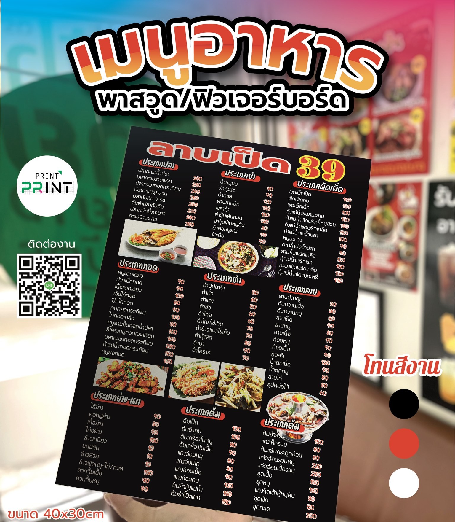 ป้ายพาสวูดสำหรับเมนูอาหาร/เมนูร้านค้า